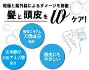 【配合成分】水、ココイルグルタミン酸TEA、BG、ラウロイルメチルアラニンNa、パーム核脂肪酸アミドDEA、ココアンホ酢酸Na、ジメチコン、テトラステアリン酸PEG-150 ペンタエリスチル、スギナエキス、ジステアリン酸グリコール、ヒドロキシプロピルキトサン、クレマティスエキス、シモツケソウエキス、セイヨウキズタエキス、褐藻エキス、加水分解酵母エキス、カプリン酸、ポリクオタニウム-10、クエン酸、クエン酸Na、ラウレス-4、ラウレス-23、ラウレス硫酸Na、塩化Na、フェノキシエタノール、シアノコバラミン、ヒノキチオール、ラベンダー油、クチナシ青